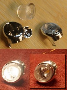 Die Scheinwerfer lassen sich bei diesem Modell recht gut beleuchten. Der Inneneinsatz wird mit einer SMD-LED versehen. Diese sitzt damit so ziemlich am "Originalplatz". Vor dem Verkleben erfolgte natürlich wieder ein Test um die Wirkung zu sehen. Letztlich wird die Funktion zwischen Fern- und Abblendlicht über unterschiedliche Helligkeiten geregelt. Für das Standlicht gibt es ganz wenig Strom um das realistisch wirken zu lassen. Im Ausgeschalteten Zustand ist leider der gelbliche Verguss der LED zu sehen. Versuche mit Anpinseln oder Filterfolien verliefen unbefriedigend. Also bleibt das so... |
